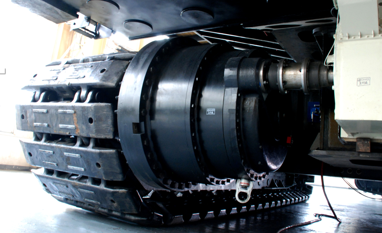 行走減速機(jī)安裝在履帶架上,由電機(jī)牽引驅(qū)動(dòng)挖掘機(jī)的走行;回轉(zhuǎn)減速機(jī)安裝在回轉(zhuǎn)平臺(tái)上,為行星結(jié)構(gòu)一級(jí)減速機(jī),電機(jī)驅(qū)動(dòng)減速機(jī),減速機(jī)輸出軸通過聯(lián)接回轉(zhuǎn)立軸齒輪與回轉(zhuǎn)大齒圈嚙合,實(shí)現(xiàn)挖掘機(jī)的回轉(zhuǎn)運(yùn)動(dòng);提升減速機(jī)為挖掘機(jī)提升機(jī)構(gòu)的主傳動(dòng)設(shè)備,用于驅(qū)動(dòng)提升卷筒;推壓減速機(jī)位于起重臂上,減速機(jī)輸出軸聯(lián)接小齒輪與斗桿齒條嚙合,驅(qū)動(dòng)齒條左往復(fù)運(yùn)動(dòng),與提升機(jī)構(gòu)一起工作實(shí)現(xiàn)鏟斗挖掘作業(yè)。