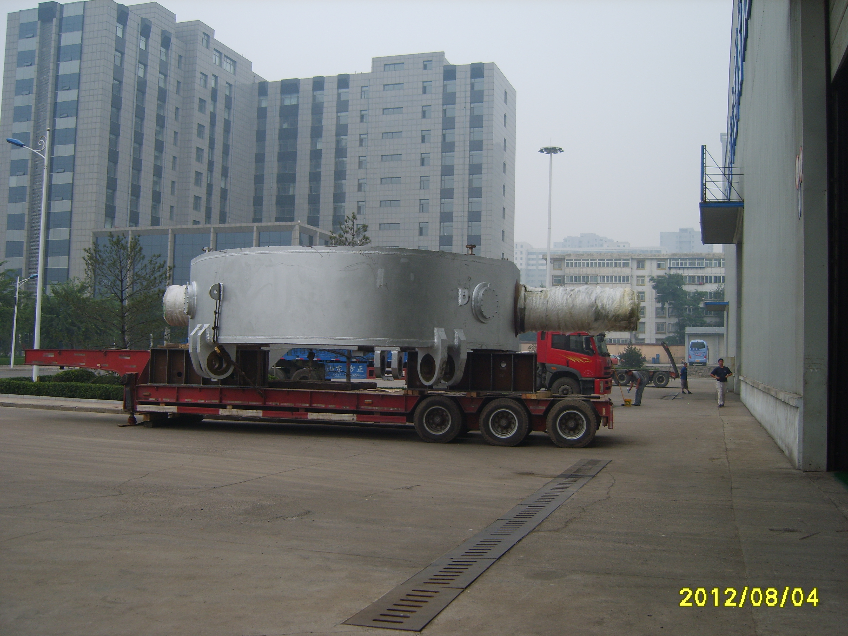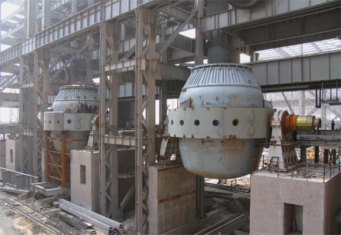 爐殼為煉鋼時鋼水容器。托圈的作用是托住爐體并在傾動裝置的驅(qū)動下帶動爐體旋轉(zhuǎn),進行煉鋼操作。爐體吊掛裝置保證爐體牢固地聯(lián)接在托圈上,并可適應(yīng)由于熱變形在爐體和托圈之間發(fā)生的相對位移。轉(zhuǎn)爐處于任何位置時,均能安全可靠地把爐體負(fù)荷均勻地傳給托圈。耳軸軸承安裝在特定的軸承座內(nèi), 可適應(yīng)轉(zhuǎn)爐系統(tǒng)的熱變形。旋轉(zhuǎn)接頭用于多路水、氣的進回,另外傳動側(cè)旋轉(zhuǎn)接頭安裝有主令控制器和旋轉(zhuǎn)編碼器,用于轉(zhuǎn)爐狀態(tài)的檢測和連鎖