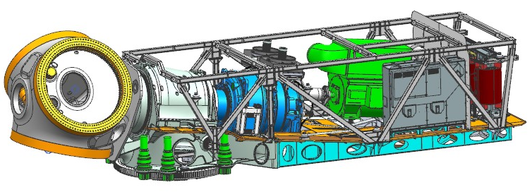 在國(guó)內(nèi)較早提出并應(yīng)用發(fā)電系統(tǒng)(發(fā)電機(jī)、變流器、干式升壓變壓器)上置技術(shù),集成電氣系統(tǒng)、冷卻系統(tǒng),機(jī)械承載結(jié)構(gòu)與動(dòng)力學(xué)分析。具有電纜數(shù)量少、易施工、塔內(nèi)線(xiàn)損少等優(yōu)勢(shì),免除箱變土建,減少整機(jī)和風(fēng)電場(chǎng)綜合成本。