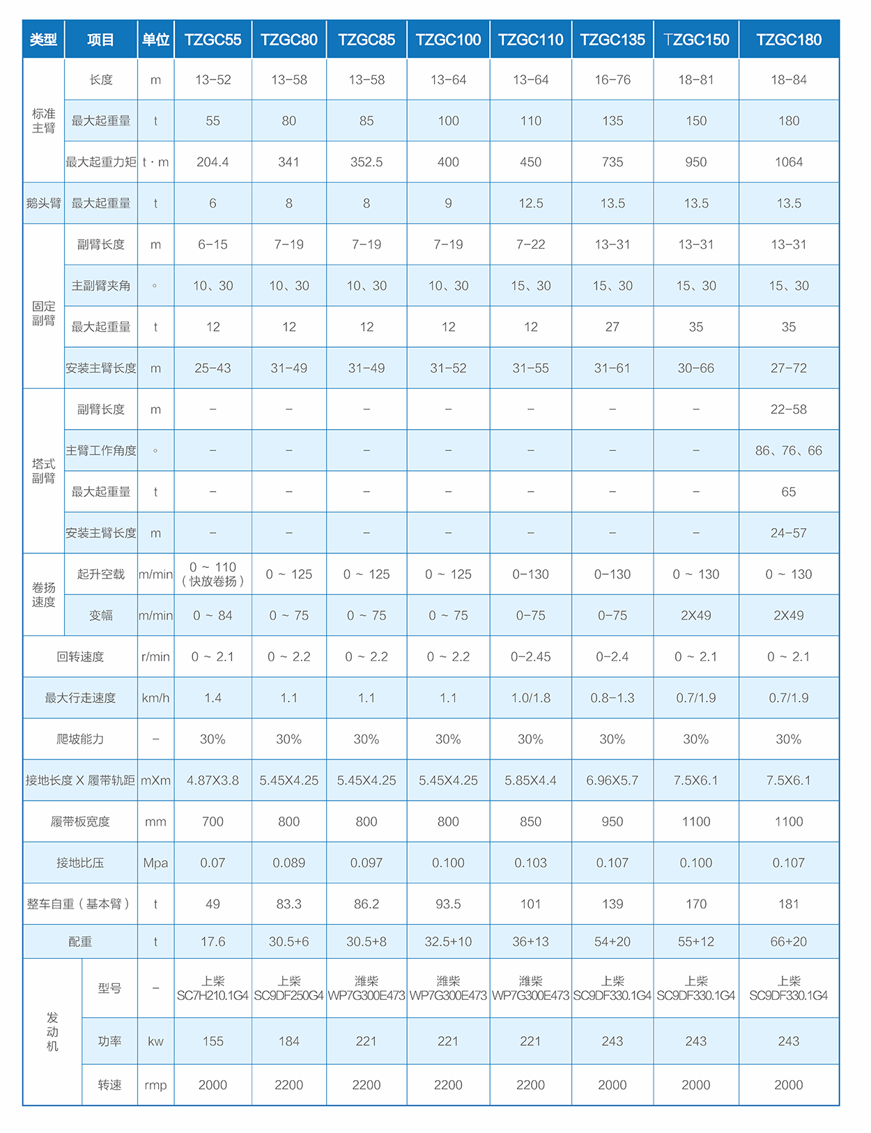 TZGC系列履帶起重機,產(chǎn)品涵蓋55-180t,微動性優(yōu)異、響應性快速、可靠性出色,整機性能行業(yè)領先。