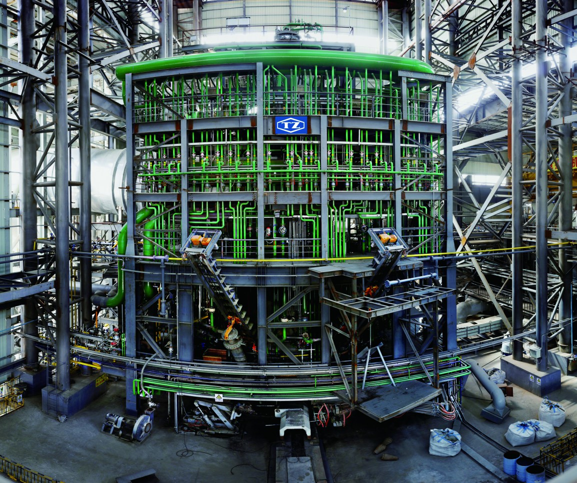 是一種熔融還原煉鐵裝置。該設(shè)備包含的部分有筒體、渣區(qū)冷卻壁和前置爐。筒體包含爐體段和煤氣室,直段直徑為Φ9280mm。煤氣室直徑為Φ5260