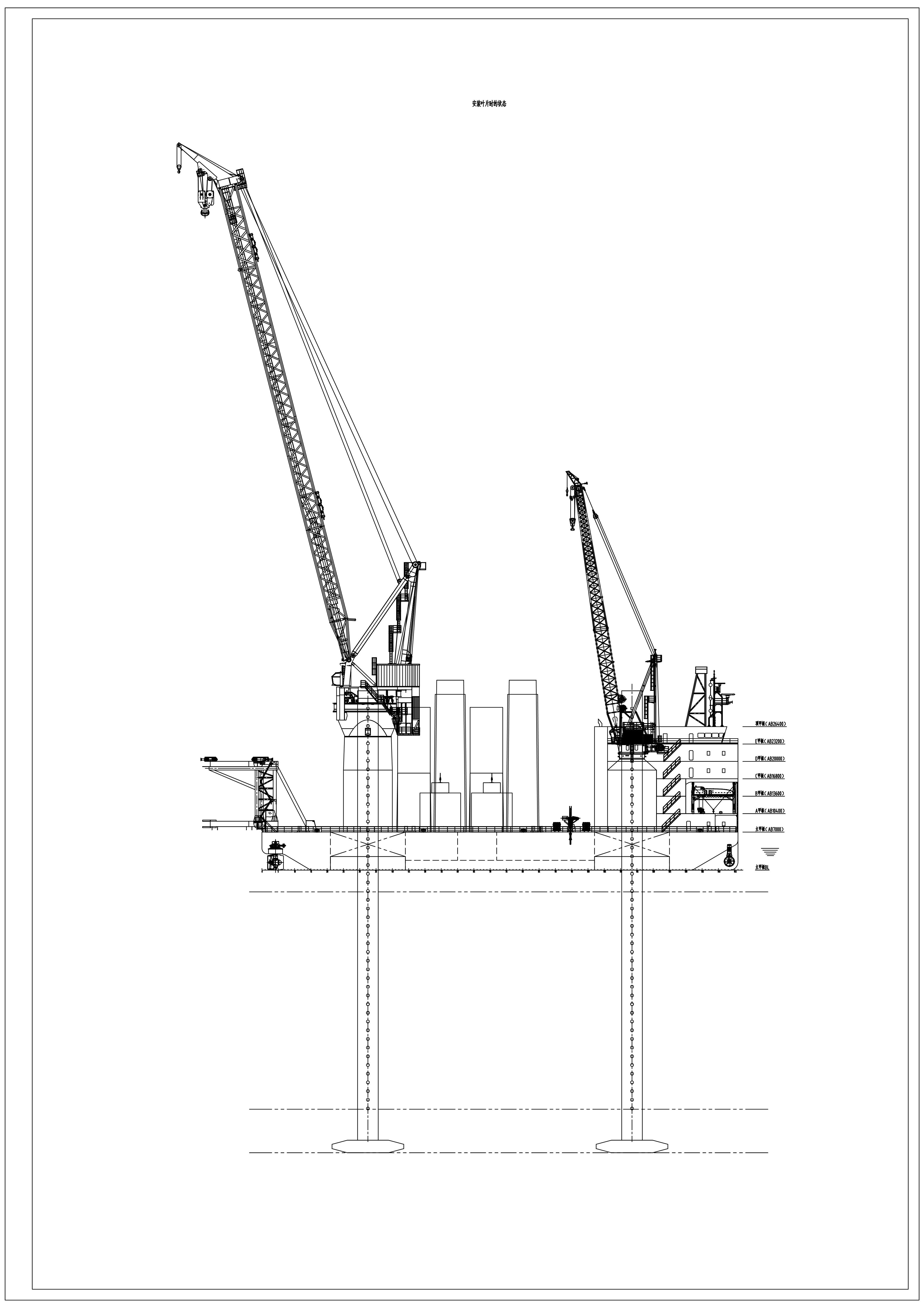 本平臺(tái)配有推進(jìn)系統(tǒng)和動(dòng)力定位系統(tǒng),具有一定的航速和操縱性,可自航至碼頭或施工場(chǎng)地,不需要拖航