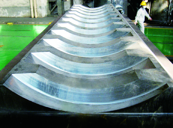 多年來,先后制造了近百件船用類鑄件,主要用戶有大連船廠、廣船國際有限公司、江蘇新時代船廠、揚子江船業(yè)集團(tuán)等著名企業(yè),同時該類鑄件出口到韓國、德國、日本等國家。為中冶京城生產(chǎn)的32萬噸原油船掛舵臂,尺寸為10500mmX6700mmX2400mm,毛重達(dá)187噸;艉球輪廓尺寸為8472mm×2810mm×4640mm,毛重達(dá)107噸。
