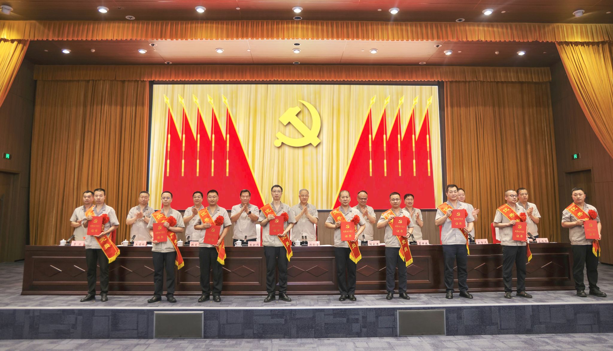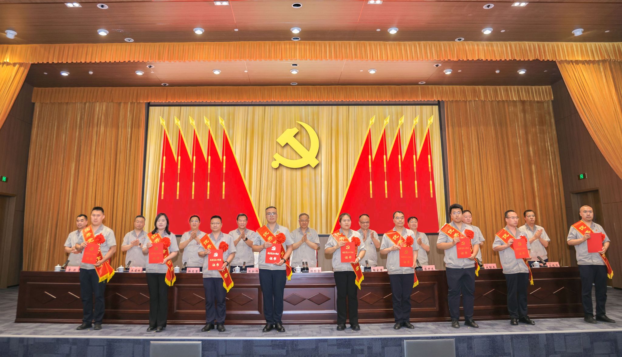 黨徽熠熠生輝,旗幟鮮艷似火,大會(huì)在莊嚴(yán)的國歌聲中拉開帷幕。集團(tuán)公司黨委副書記、副董事長、總經(jīng)理陶家晉主持會(huì)議。公司黨委專職副書記、副董事長張新偉宣讀集團(tuán)公司黨委《關(guān)于表彰優(yōu)秀共產(chǎn)黨員、優(yōu)秀黨務(wù)工作者和先進(jìn)基層黨組織的決定》。“兩優(yōu)一先”代表們身披綬帶、胸佩紅花依次登臺(tái),公司領(lǐng)導(dǎo)為他們頒獎(jiǎng)。