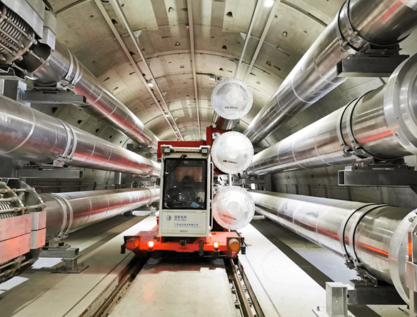 但難題接踵而至:隧道內徑有限,管線卻又長又重又嬌貴,傳統(tǒng)的工程機械連轉身都困難,更別提進行精準安裝。面對難題,太重突破傳統(tǒng),革新工藝、自主研發(fā)專用運裝成套裝備,給出了充滿智慧的“太重方案”。