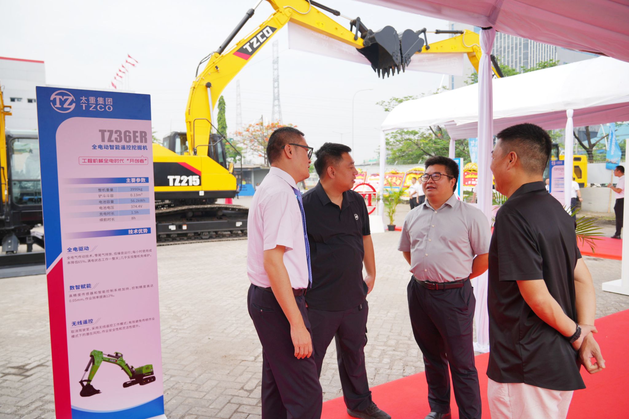 儀式現(xiàn)場(chǎng)熱鬧非凡,二十余臺(tái)太重挖掘機(jī)環(huán)繞而立,擎起強(qiáng)勁有力的鋼鐵巨臂,歡迎各位與會(huì)嘉賓的到來(lái)。大家來(lái)往穿梭,興致勃勃地察看太重產(chǎn)品、交流技術(shù)創(chuàng)新。太重與用戶在此刻緊密牽手,共同暢想未來(lái)合作的美好前景。