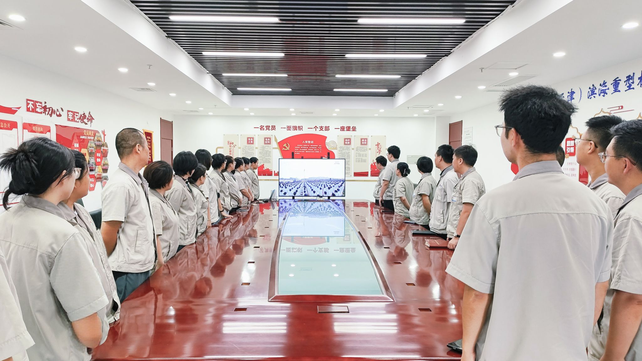 在集團總部報告廳,集團公司領(lǐng)導與各部門職工代表齊聚,集中收聽收看大會實況直播,共同聆聽感悟習近平總書記發(fā)表的重要講話,深刻體會講話中蘊含的歷史意義與時代價值,見證這一莊嚴而光輝的歷史時刻,愛國情懷在太重激蕩,奮斗熱情在每一位職工心中點燃。