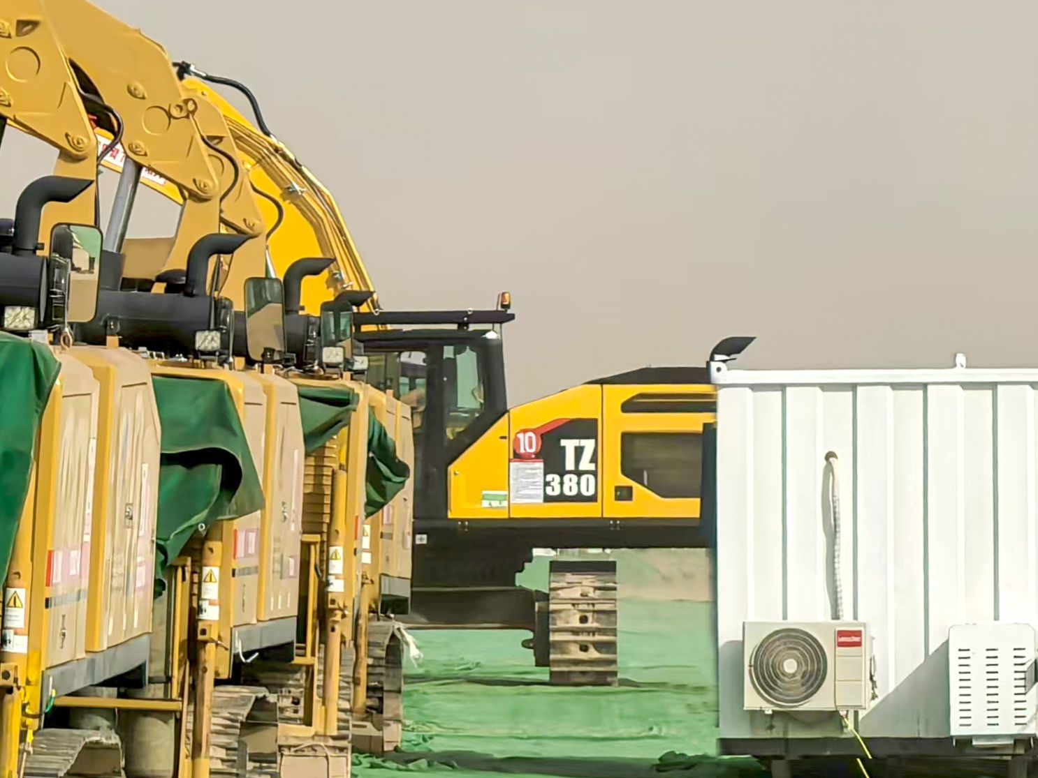 數(shù)臺(tái)TZ380液壓挖掘機(jī)矗立其間