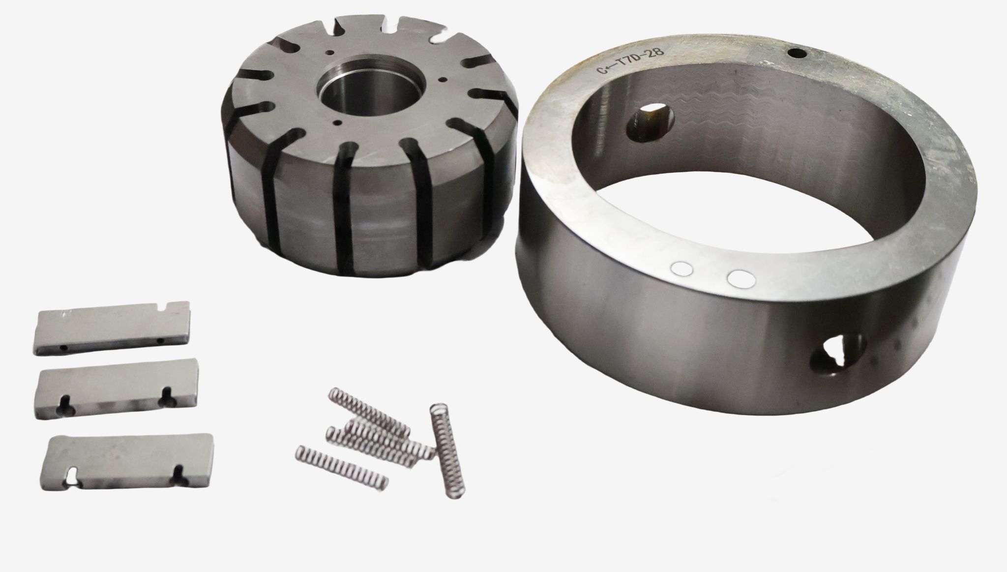 創(chuàng)新采用的雙唇葉片結(jié)構(gòu),就像一對(duì)配合超默契的搭檔 —— 一片葉片剛和定子曲線(xiàn)完成接觸,另一片馬上接棒頂上,互相補(bǔ)位,就算長(zhǎng)時(shí)間轉(zhuǎn)個(gè)不停,效率也能一直在線(xiàn)。配合底部柱銷(xiāo)推動(dòng)系統(tǒng),就像給每個(gè)葉片配備了專(zhuān)業(yè)教練,確保其始終以最優(yōu)雅的姿態(tài)沿定子曲線(xiàn)滑動(dòng),從而極大延長(zhǎng)了“葉片-定子”的使用壽命。關(guān)鍵摩擦副部件采用高耐磨合金材料并經(jīng)特殊熱處理,猶如為核心零件披上金剛鎧甲。轉(zhuǎn)子與定子這對(duì)“最佳拍檔”在長(zhǎng)期配合中展現(xiàn)驚人耐力,即使面對(duì)30MPa高壓挑戰(zhàn),依然保持堅(jiān)硬本色,真正助力這款產(chǎn)品成為“長(zhǎng)壽之星”。