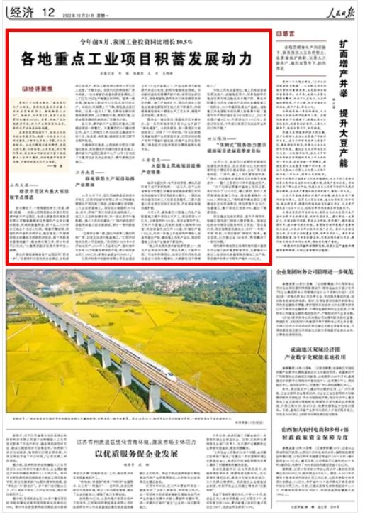 今日,人民日?qǐng)?bào)在重要版面《各地重點(diǎn)工業(yè)項(xiàng)目積蓄發(fā)展動(dòng)力》報(bào)道中,重點(diǎn)關(guān)注太重新園區(qū)設(shè)備安裝及建設(shè)進(jìn)展情況,給集團(tuán)公司廣大干部職工和新園區(qū)的建設(shè)者們帶來(lái)了極大地鼓舞。
