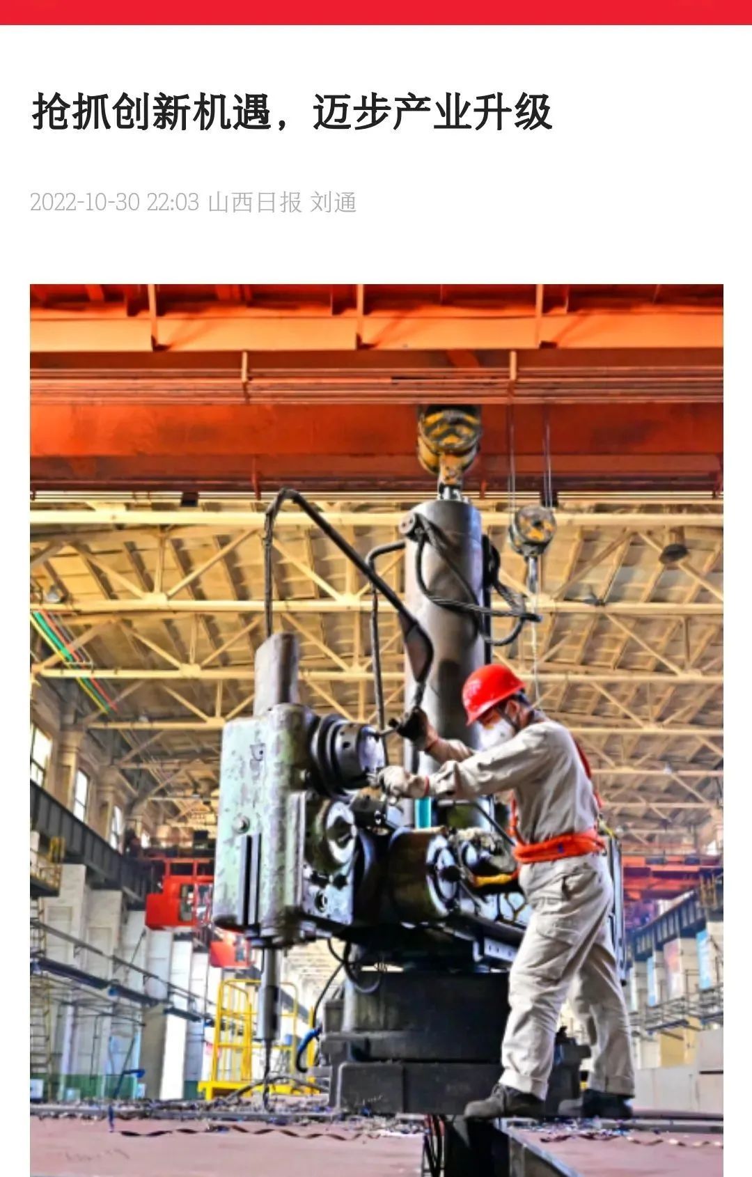 10月30日,山西日?qǐng)?bào)以《搶抓創(chuàng)新機(jī)遇,邁步產(chǎn)業(yè)升級(jí)》為題,對(duì)太重集團(tuán)加大工藝技術(shù)創(chuàng)新取得的新突破進(jìn)行報(bào)道。全面深化改革以來,太重集團(tuán)堅(jiān)持改革創(chuàng)新,聚焦智能設(shè)計(jì)、智能制造、智能產(chǎn)品、智能服務(wù),全力推動(dòng)“制造”向“智造”轉(zhuǎn)型升級(jí),持續(xù)提升制造業(yè)的技術(shù)含量,賦能公司高質(zhì)量高速度發(fā)展。