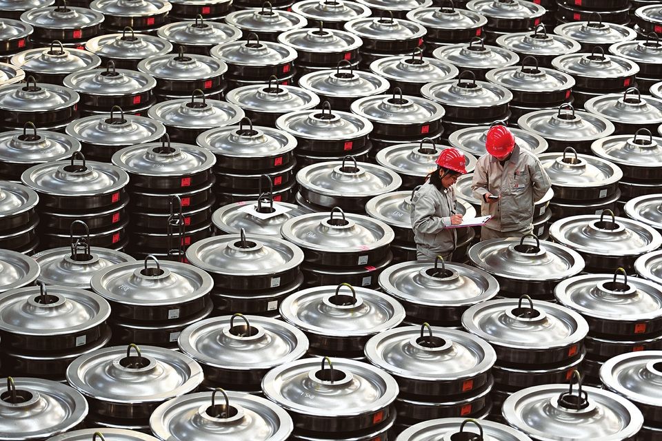 3月1日,太原重工軌道交通設備有限公司,車輪廠成品待發(fā)區(qū)技術人員正在對產(chǎn)品進行最后的檢驗。太原重工軌道交通設備有限公司自主研發(fā),建成軌道交通用車輪、車軸、齒輪箱及輪對的全譜系、全系列、全流程研發(fā)制造基地,輪軸產(chǎn)品出口全球70多個國家和地區(qū)。新春伊始,面對大量出口訂單,該公司科學組織,各生產(chǎn)線全負荷運轉,忙生產(chǎn),趕訂單,全力以赴保交貨,為完成今年首季目標奮力沖刺。