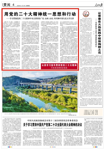 人民日報刊發(fā)的《用黨的二十大精神統(tǒng)一思想和行動——學(xué)習(xí)貫徹黨的二十大精神中央宣講團(tuán)在廣東、山西、山東、四川和中國人民大學(xué)宣講》文章,對公司職工王永晶進(jìn)行了采訪報道。