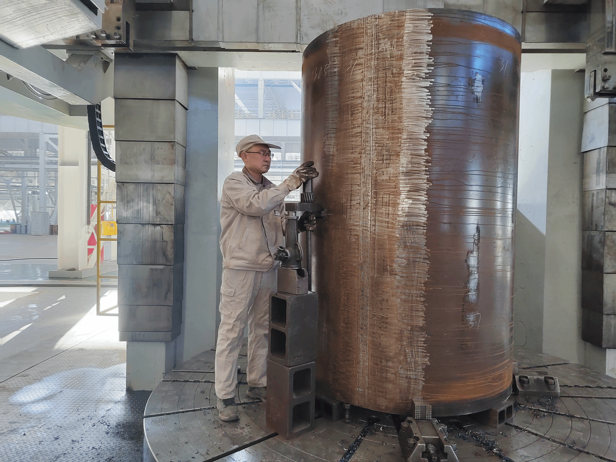 烏東德、白鶴灘水電站是繼三峽、溪洛渡、向家壩水電站之后的“大國重器”,使用的是目前世界上單鉤起重量最大的1300t橋式起重機(jī)。李鋒憑借多年的操作經(jīng)驗(yàn)以及對機(jī)床的了解,利用現(xiàn)有條件改造工裝,提升機(jī)床加工能力,重新設(shè)計(jì)裝夾工具,成功用4米車床完成了正常情況下5米車床才能完成的工作。最終,由他制造的8臺起重機(jī)的32件筒體,共節(jié)約成本30余萬元。