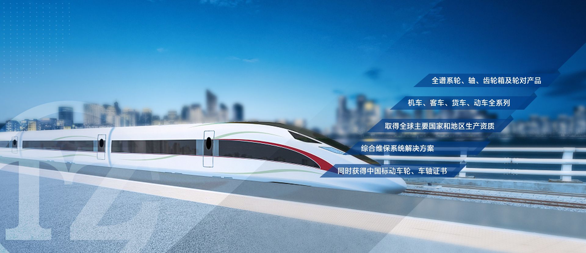 可生產(chǎn)鐵路機(jī)車輪對(duì)、鐵路客車輪對(duì)、鐵路貨車輪對(duì)(帶軸承,包括重載輪軸)、動(dòng)車輪對(duì);地鐵輪軸(帶齒輪箱、軸承)、輕軌輪對(duì);工礦冶金設(shè)備用輪對(duì)等產(chǎn)品。能夠滿足TB、AAR、EN、DB等標(biāo)準(zhǔn)要求。
